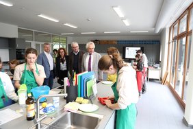 Zweifach-Turnhalle und Lehrküche waren in den vergangenen knapp zwölf Monaten generalsaniert worden, was zu deutlichen Einschränkungen im Unterrichtsalltag geführt hatte: So mussten die Klassen für den Sport ausweichen und zum Beispiel in die Luitpoldanlage gebracht werden. Daher ist das Kollegium der Karl-Meichelbeck-Realschule nun froh, wieder direkt vor Ort – ohne große Umwege und Zeitverluste – in modernen Räumen unterrichten zu können. In der Lehrküche warten vier neue Kochinseln auf die Schülerinnen und Schüler, an denen regelmäßig leckere Gerichte „gezaubert“ werden.