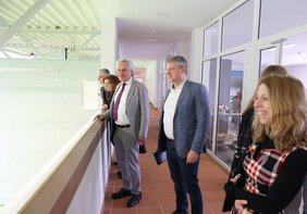 Die Klassenräume werden bereits seit Herbst 2023 wieder genutzt; seit den Faschingsferien läuft mittlerweile auch der Unterricht in der Turnhalle und der Lehrküche. Landrat Helmut Petz stattete der Realschule vor wenigen Tagen einen Besuch ab und ließ sich von Schulleiter Bernd Friedrich, Architektin Michaela Bahner sowie den zuständigen Mitarbeiterinnen und Mitarbeitern des Landratsamts Freising die Baumaßnahme erläutern.