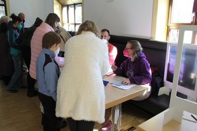 Allen Flüchtlingen aus der Ukraine, die dann erscheinen, zahlt das Landratsamt ein Startergeld pro Person, unabhängig von Alter und Geschlecht, und händigt ihnen Krankenbehandlungsscheine aus. Zeitgleich erfolgt eine Schnellregistrierung, bei der Daten aufgenommen und Ausweise eingescannt werden. Der Ablauf ist schnell und effektiv, denn er erspart viele zeitaufwändige Einzeltermine und läuft aus Infektionsschutzgründen nach dem Einbahnstraßenprinzip ab. Dolmetscher und ein Sicherheitsdienst sind vor Ort.