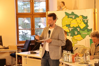 1855 Millionen Kilowattstunden pro Jahr beträgt nach der Studie der Solarregion der Strombedarf aus erneuerbaren Energien im Landkreis, um die Energiewende zu schaffen. Man nimmt an, dass Biomasse und Wasserkraft weitgehend konstante Mengen an Strom liefern werden, das wären aktuell 465 Millionen Kilowattstunden. Der Rest (1390 Mio. kWh) müsste durch Photovoltaik und Windkraft erzeugt werden. „Ein Sechstel dieses Wertes haben wir 2022 geschafft“, sagte Henze. Das zweite Sechstel könne durch die konkret bevorstehenden neuen PV-Anlagen und Windkraftanlagen erreicht werden. „Außerdem ist ein weiterer erheblicher Zubau geplant. Auch das dritte Sechstel ist in Sichtweite“, sagte Raimund Becher von den Solarfreunden Moosburg, der in seinem Vortrag den Blick in die nähere Zukunft lenkte.
