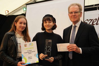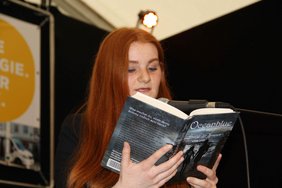Und dann gab es für die Zuschauer im Kaffeehauszelt noch eine Lesung. Stefanie Peisker las aus ihrem Buch „Ocean Blue“ vor, das sie mit „Talent und Disziplin“ geschaffen hatte, so Laudatorin Paulina Gastl. „Das ist eine packende, in sich stimmige Abenteuergeschichte.“ Es sei „außergewöhnlich, mit 16 Jahren so ein Buch zu schreiben“. So wie die anderen Preisträger hat sie sich den Jugendkulturpreis redlich verdient.