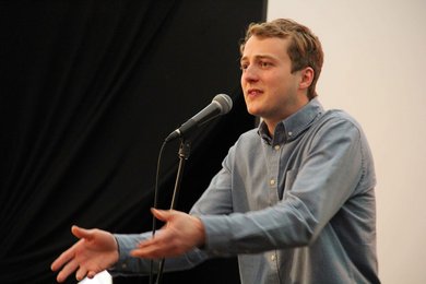 „Vielen Dank. Mit dieser Einlage haben Sie jede Musikgruppe hervorragend ersetzt“, lobte Landrat Hauner. „Kunst ist vielfältig“, sagte er in seiner Begrüßung. Kunst könne daraus bestehen, die richtigen Worte zu finden, Bilder im Kopf ausdrucksstark zu Papier zu bringen, den richtigen Augenblick zu erwischen und dann auf Auslöser zu drücken. „Diese Vielfältigkeit repräsentieren unsere diesjährigen Jugendkulturpreisträger. Sie dürfen heute hier einen Poetry Slammer, eine Autorin, eine Malerin und einen Fotografen erleben.“
